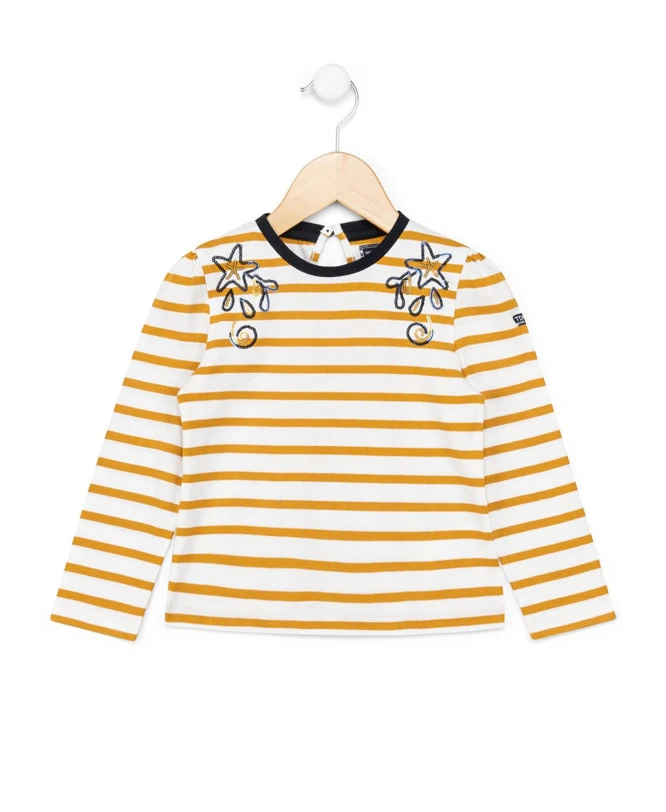 Marinière Fille Rayé Jaune à Sequins