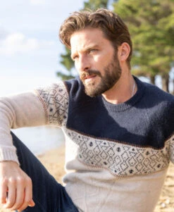 Un pull de Noël au style jacquard, inspiration marine, qui vous tiendra chaud tout l’hiver.