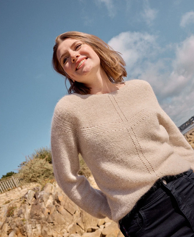 Que vous prĂ©fĂ©riez un look dĂ©contractĂ© ou plus Ă©lĂ©gant, le pull femme Kaliso est l’alliĂ© parfait pour cet hiver. Son design ajourĂ© Ă l’avant, ses finitions en fibres mĂ©tallisĂ©es et sa coupe moderne lui confèrent une allure raffinĂ©e, tout en vous assurant une douceur et un confort inĂ©galables. FabriquĂ© en France Ă Saint-Malo. Disponible en coloris indigo et beige.Â