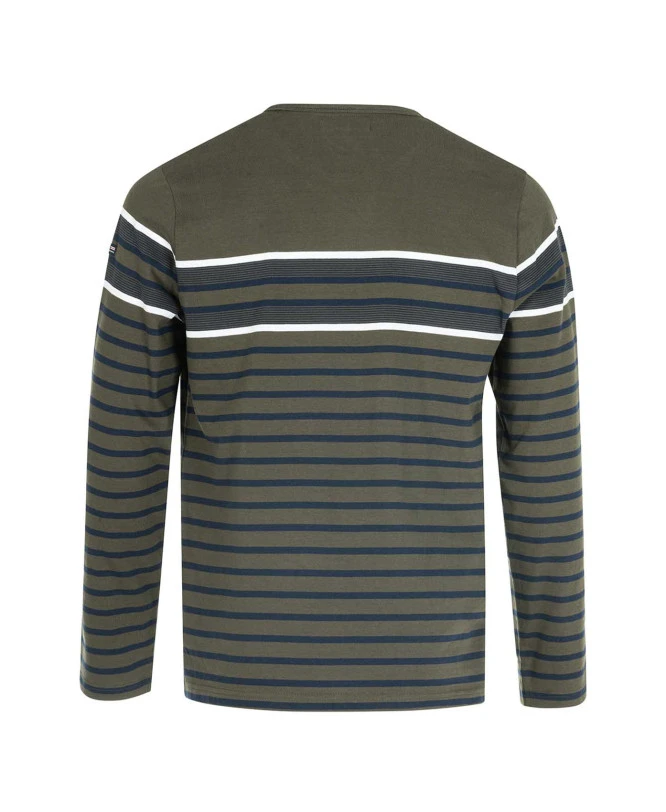 TEE SHIRT ML FOND KAKI RAYE BLEU MAKAKI