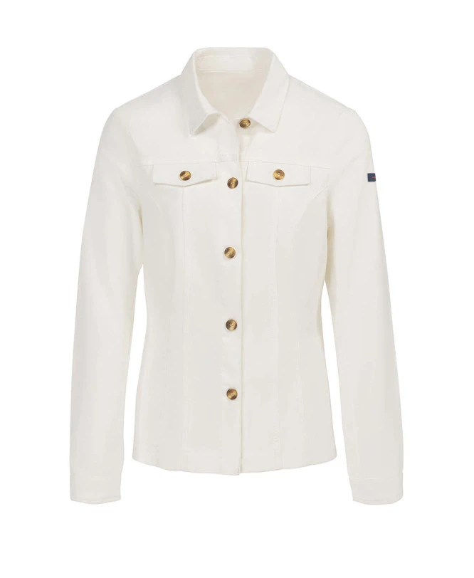 Un indispensable du printemps : la veste en jean blanche. A porter sur un top coloré, en association avec un short ou un pantalon léger.